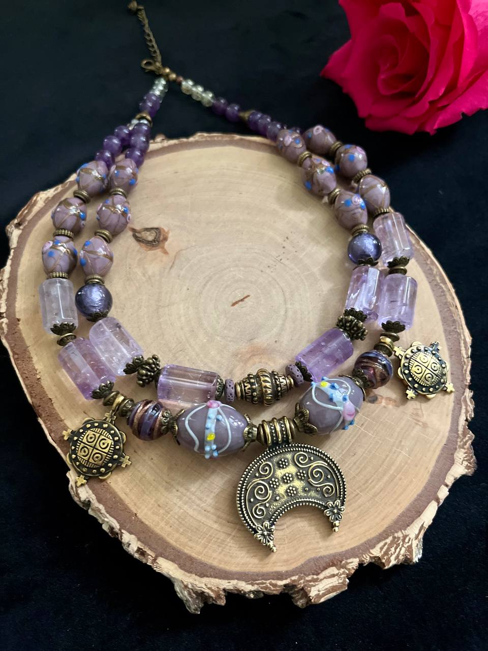 Аметист, венеційка, фурнітура, підвіски ручне литво латунь.