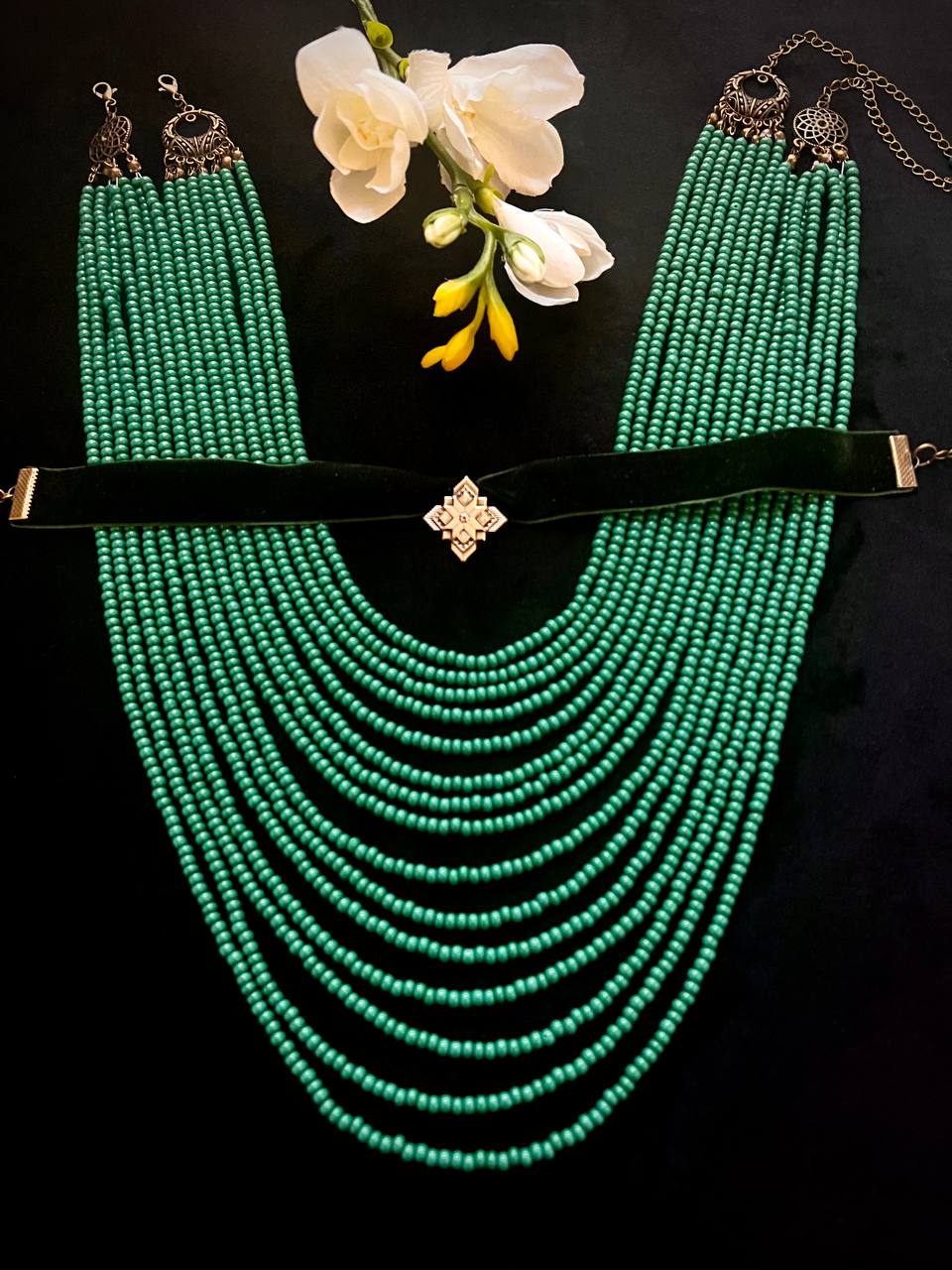 Коротше на 7 ниток, довжина верхньої низки разом з замком 47 см . Ланцюжок 8 см