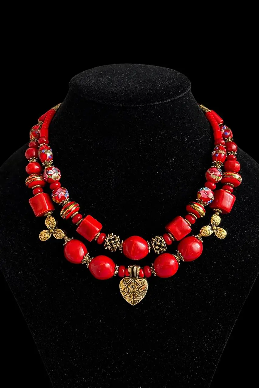 Серце квітуче латунь ручна робота, авторська глазурована кераміка, сучасна венеційка, лампворк, натуральний корал, скло, фурнітура.